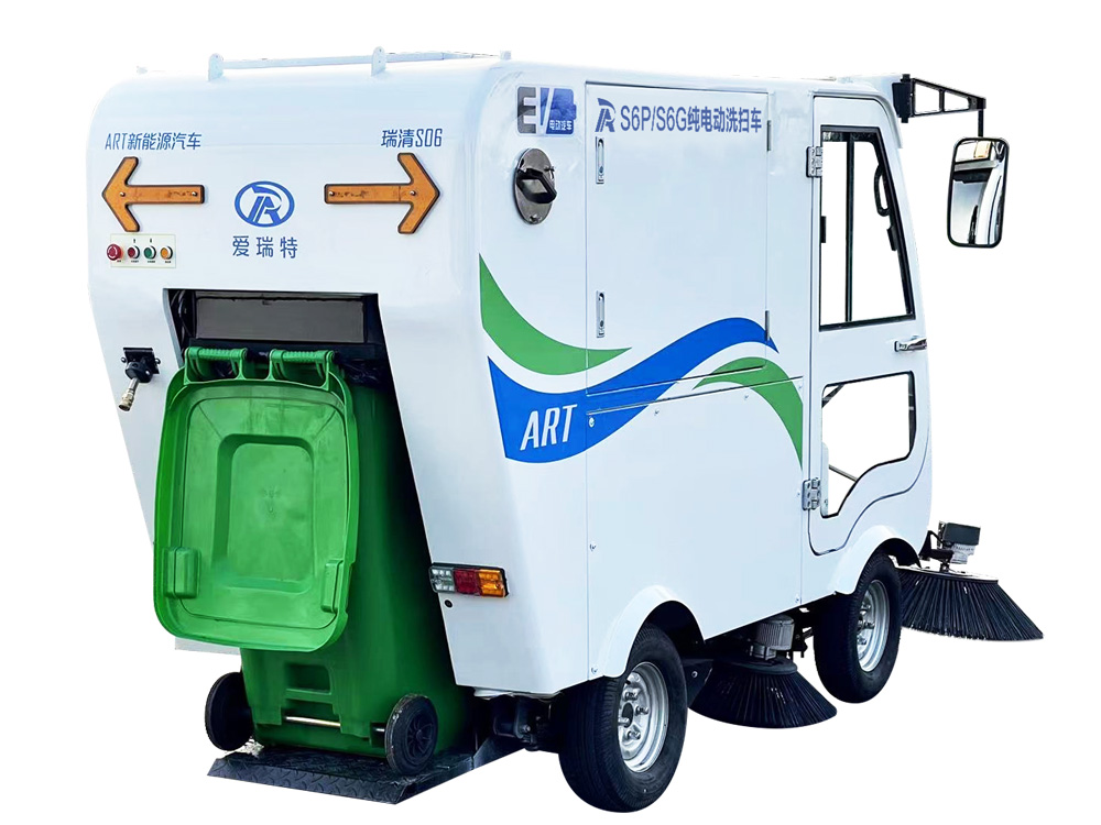 Ruiqing s6p/s6g pure electric cleaning and sweeping vehicle is small, flexible and has strong trafficability. It is mainly used for the cleaning of non motorized lanes, auxiliary roads, sidewalks, back streets and alleys. It adopts the pure suction method and integrates cleaning, spraying, high-pressure washing and hand-held suction. It can quickly clean fallen leaves, stones, sand dust and white garbage. It is equipped with 240L standard garbage cans.
