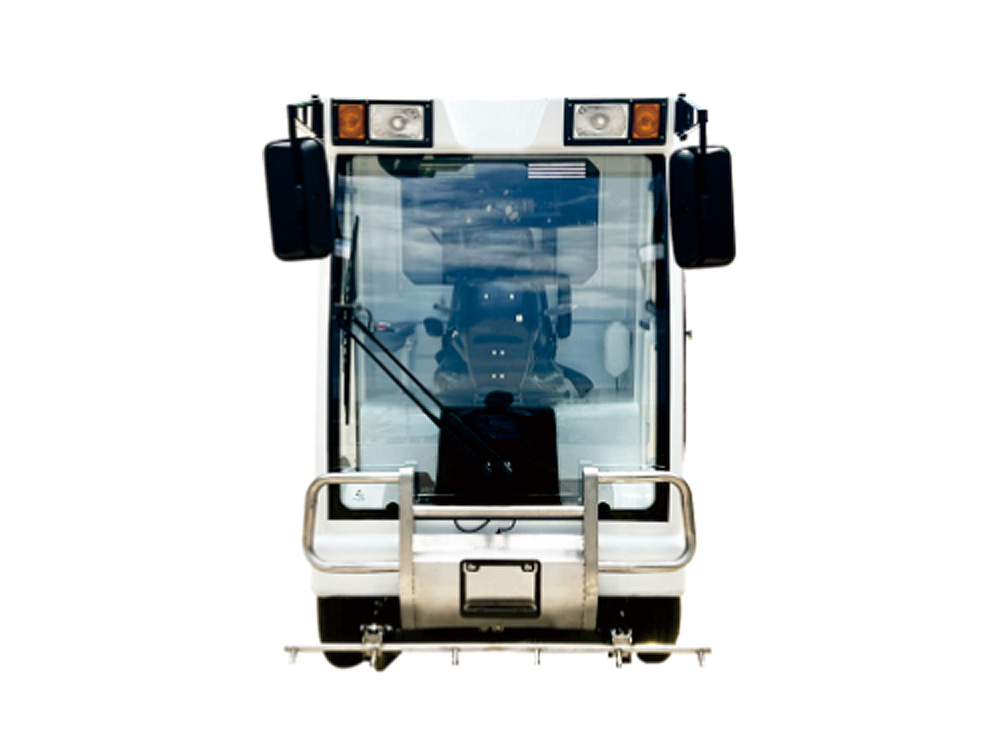 車身:全封閉駕駛室,三面全玻通透,前置不銹鋼保險杠,優質高強度金屬車身,作業視線好,安全美觀;