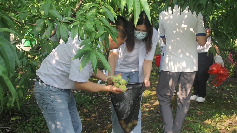 活動當天,天氣晴朗。參與采摘活動的20余名員工來到果園,邊品嘗、邊挑選,園內處處伴隨著歡聲笑語,洋溢著輕松與和諧的氛圍,平日里工作的疲勞都融化在這陽光明媚的夏日里,在汗水與收獲的滿足中,大家充分體驗了一次采摘的樂趣。