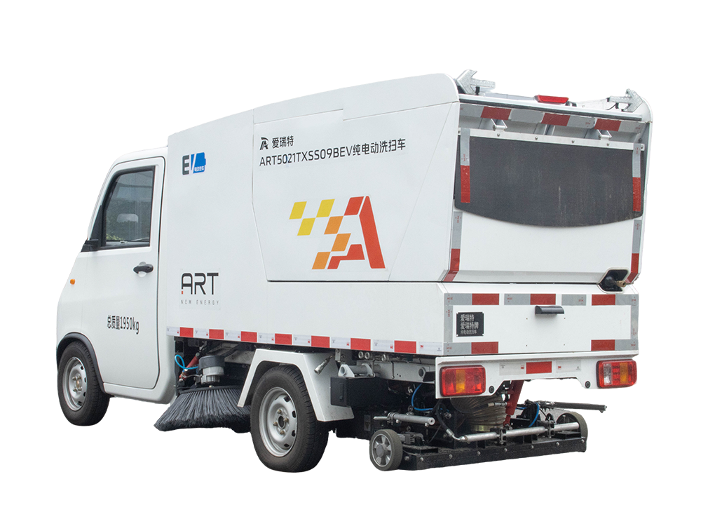 ART5021TXSS09BEV純電動洗掃車主要用于主干道、非機動車道、背街小巷等路面的普掃作業,集清掃、高壓沖洗等功能為一體,可快速清掃落葉、石子、沙塵、白色垃圾等,垃圾,自卸傾倒。