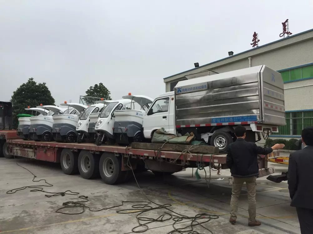 2015年12月8日,愛(ài)瑞特環(huán)衛(wèi)設(shè)備整裝待發(fā)!時(shí)隔24個(gè)小時(shí)抵達(dá)廣東東莞!為東莞環(huán)衛(wèi)市場(chǎng)提供免費(fèi)清掃保潔方案!在此次試點(diǎn)工作中,充分得到了當(dāng)?shù)刈畲笪飿I(yè)公司家寶物業(yè)領(lǐng)導(dǎo)層高度稱(chēng)贊。完全超越了客戶的期望值!